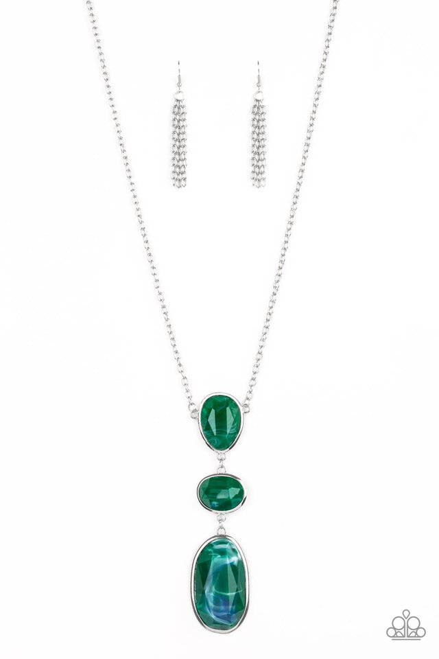 Featuring a colorful marble-like finish, three mismatched Eden acrylic frames link down the chest for a dramatic effect. Features an adjustable clasp closure. Color may vary. Sold as one individual necklace. Includes one pair of matching earrings.