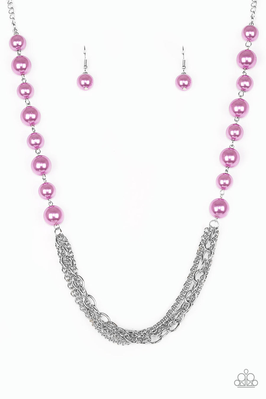 Bubbly purple pearls give way to layers of mismatched silver chains, adding a twist to the timeless pearl palette. Features an adjustable clasp closure.